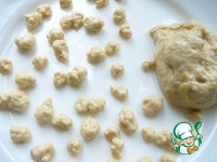 Как я уже говорила, нам нужен "сырой" сейтан. Мы его не варим. Мы его жарим. Делаем малюсенькие заготовки - шарики, размером с ноготь и даже меньше. |