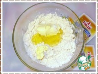 Приготовим тесто: просеянную муку тщательно перемешайте с протертым творогом. |