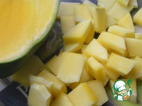 Положите проростки в миску, добавьте перец, кокосовую стружку, огурец, манго, лимонный сок |