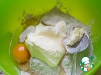 Муку, масло и 1 яйцо растереть и замесить тесто. |