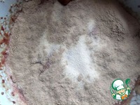 Всыпать манку и гречневую муку. Тщательно перемешать миксером. |