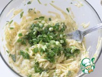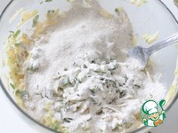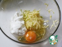 Для приготовления рулетов крупно натрите кабачок, добавьте яйцо и мягкий творог. |