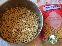 Фасоль "Черный глаз" залить горячей водой, дать постоять минут 10 и отварить до готовности по инструкции (примерно 40 мин). |