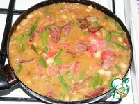 Коссуле - это жаркое из мясного ассорти с фасолью, название связано с тем, что наше блюдо томится в глиняных горшочках.