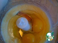В отдельной посуде взбить в пышную массу масло с сахаром, добавить яйца |