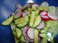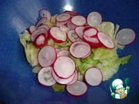 Описание: Пришло время готовить салаты из редиса. "Редис содержит калий, натрий, кальций, фосфор, магний, железо, витамины РР, С. Содержит редис и тиамин, рибофлавин и никотиновую кислоту. Горчичные масла придают редису своеобразный привкус. Салаты из редиса обладают умеренным желчегонным, противоотёчными свойствами, возбуждают аппетит, способствуют лучшей перистальтике и опорожнению кишечника" (инет). Готовим очень простой и вкусный салат.