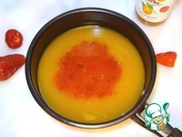 Добавить конфитюр, растертую клубнику (можно размороженную) и довести до кипения, но не кипятить. |