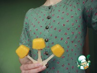 Через час повтыкать палочки в застывшую массу. Окончательно фруктовый лед застынет часа через 4. |
