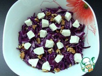 Капусту нашинковать, орехи почистить и немного измельчить, посыпать сверху на капусту. |