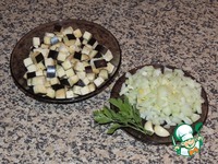 Лук и чеснок измельчить, баклажан нарезать кубиками. |