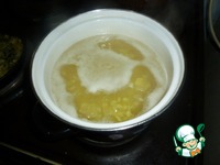 Дать прокипеть, по желанию добавить пару зубчиков чеснока, раздавленного через чеснокодавилку, лавровый лист, зелень укропа, петрушки и любистока. |
