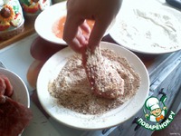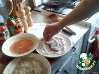 Брать каждый кусочек и обмакивать, сначала в муке, |