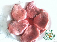 Вырезку порезать на пласты 1-1,5см. Хорошенько отбить, посолить, поперчить и оставить минут на 5. |