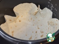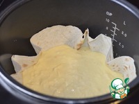 Чашу мультиварки смазать сливочным маслом и выложить лаваш. |