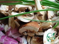 Крупно нарезать грибы, мелко лук. |
