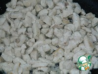 А в это время обжариваем мелко нарезанное куриное филе. Солим, перчим. |