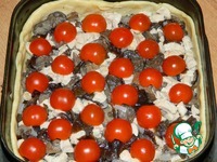 Распределяем сверху равномерно заливку и выпекаем при 180*С, минут 40-50. До румяного цвета. |