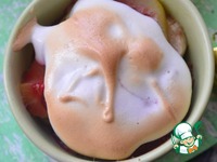 Сверху на конфитюр выложить взбитый белок. Поместить формочки в разогретую духовку до 250С и запекать в течение 1-2 мин., до появления золотистой корочки |