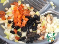 Добавить мелко порезанную курагу и изюм, орехи. Прогреть все вместе еще минут 5 |