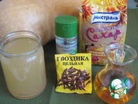 Приготовим необходимые продукты. Это тыква, яблочный сок, сахар коричневый ТМ "Мистраль", перец душистый, гвоздика, корица, уксус яблочный. |