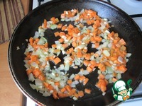 Морковь, лук и чеснок нарезаем кубиком и пассируем. Две мин. до готовности закладываем помидоры И через мин. 5 забрасываем в кастрюлю. |