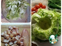 Описание: Быстренький салат с насыщенным вкусом на все случаи жизни)) частенько делаю после работы-приготовление занимает 15-20 минут. Вместо сыровяленого мяса курицы, которое в супермаркетах продается как карпаччо, можно использовать креветки, слабосоленую красную рыбку или обычные куриные грудки отварные или обжаренные.