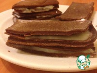Тем временем коржики готовы. Кладем один на второй и разрезаем их на ломтики |
