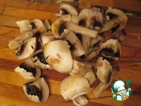 Затем нарезанные на четыре части шампиньоны, и еще выпекаем 15 мин. |
