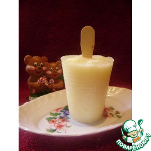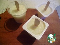 Готовое ананасовое пюре разливаем по формочкам. У меня это стаканчики с под йогурта и одноразовые. В каждую вставляем палочку и ставим в морозилку. Лучше на всю ночь. |