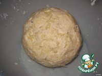 Творожную и масляно-сырные массы перемешать, замесить тесто. Тесто должно получится комковато-рассыпчатое. Скатать в шар, накрыть пленкой и убрать в холодильник на 30 минут. |