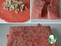 На блинчик выложить начинку и свернуть конвертом. |