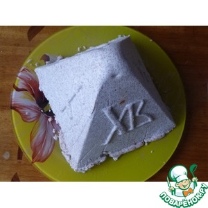 Собрать пасочницу (либо использовать другую емкость), смоченной марлей проложить форму и выложить в неё вкусную творожную массу. |