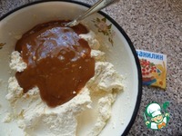 Добавить сгущенное молоко, у меня вареное и ванилин. Перемешать. |
