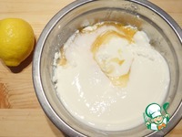 Готовлю творожный слой. Творог пропускаю через мясорубку, добавляю лимонный сок, мед, йогурт, сахарную пудру, ванилин. |