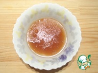 Быстрорастворимый желатин для творожного слоя заливаю 1/2 частью (необходимой для замачивания желатина) горячей кипяченой водой, размешиваю до полного растворения, процеживаю. |