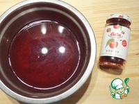 Выливаю на творожный слой остывшую воду с конфитюром и желатином. Убираю форму снова в холодильник до полного застывания. |