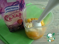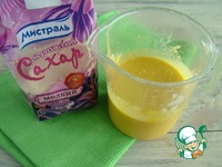 Соединяем желтки, яйца, мягкое масло с сахаром. Я использую тростниковый сахар Мистраль. |