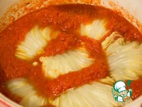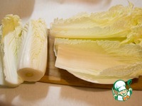 У капусты отрезать нижнюю часть и отобрать крупные листья. Оставшиеся использовать для приготовления салата. |