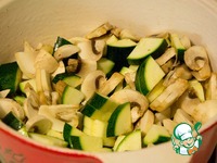 Цукини и грибы нарезать некрупными ломтиками и обжарить в масле. |