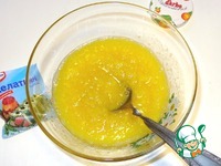 Перемешать желатиновую смесь с половиной абрикосового пюре |