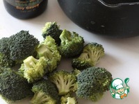 Свежую брокколи разобрать на соцветия и положить в воду. Довести до кипения. Не забудьте добавить соевый соус. |