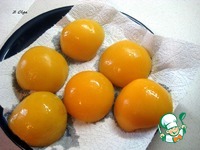 Тем временем половинки абрикос (персиков) выложить на бумажные салфетки и дать им хорошенько обсохнуть. |