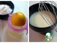 Делаем глазурь для печенья. Нам понадобится лимонный сок и сахарная пудра. Из лимона выдавливаем сок, смешиваем с сахарной пудрой до однородности. |