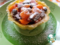 Достаем корзиночки из духовки и на дно кладем вишню (по несколько ягодок), если вишня замороженная, то предварительно разморозить. |