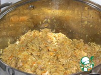 Готовим рис до полуготовности под крышкой на медленном огне, периодически помешивая, 30-35 минут. |