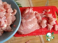 Отделяем мясо от костей и нарезаем его небольшими кусочками диаметром 1-1,5 см. |