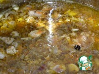 Содержимое сковороды помещаем в кастрюлю с бульоном. |