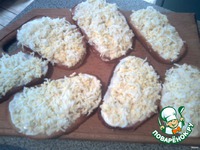 Натереть одну сторону гренки чесноком и смазать майонезом. |