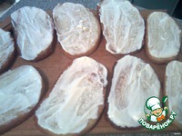 Батон тоненько порезать и обжарить слегка на растительном масле с двух сторон. |