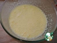 Взбить яйца с сахаром на протяжении 8-10 минут. Масса должна посветлеть и увеличиться в объёме. |